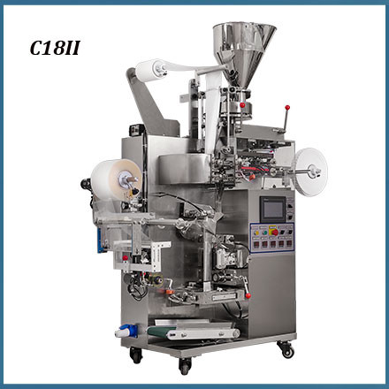 C18II inner and outer tea bag packing machine is suitable for inner bag and outer envelope, and for packing small granular products such as tea leaf, medicinal tea and health care tea.